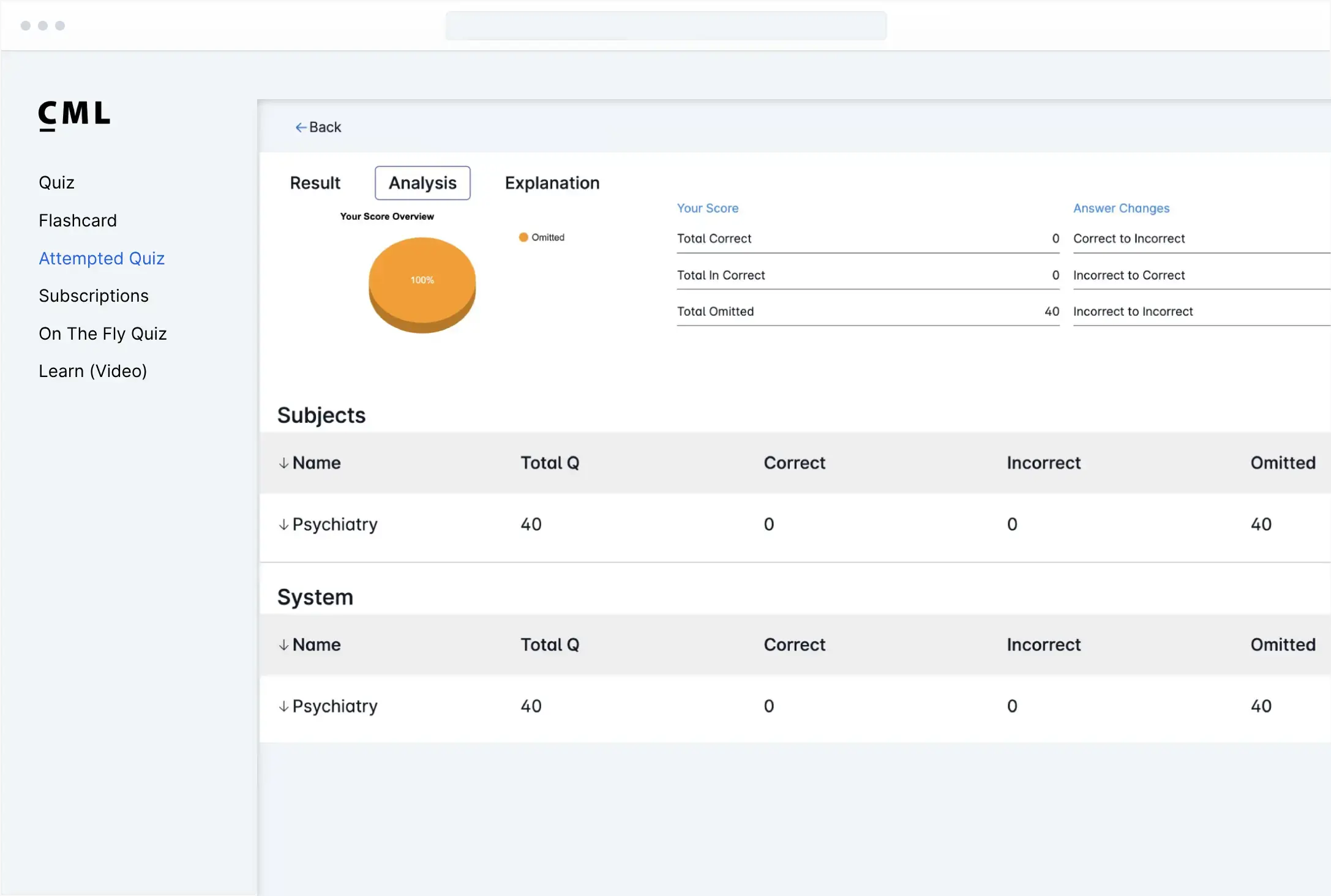 Clinica’s self-assessments for NExT use a unique scoring method that takes into account factors like percentage accuracy, rank within a percentile, previous student performance data, and more.